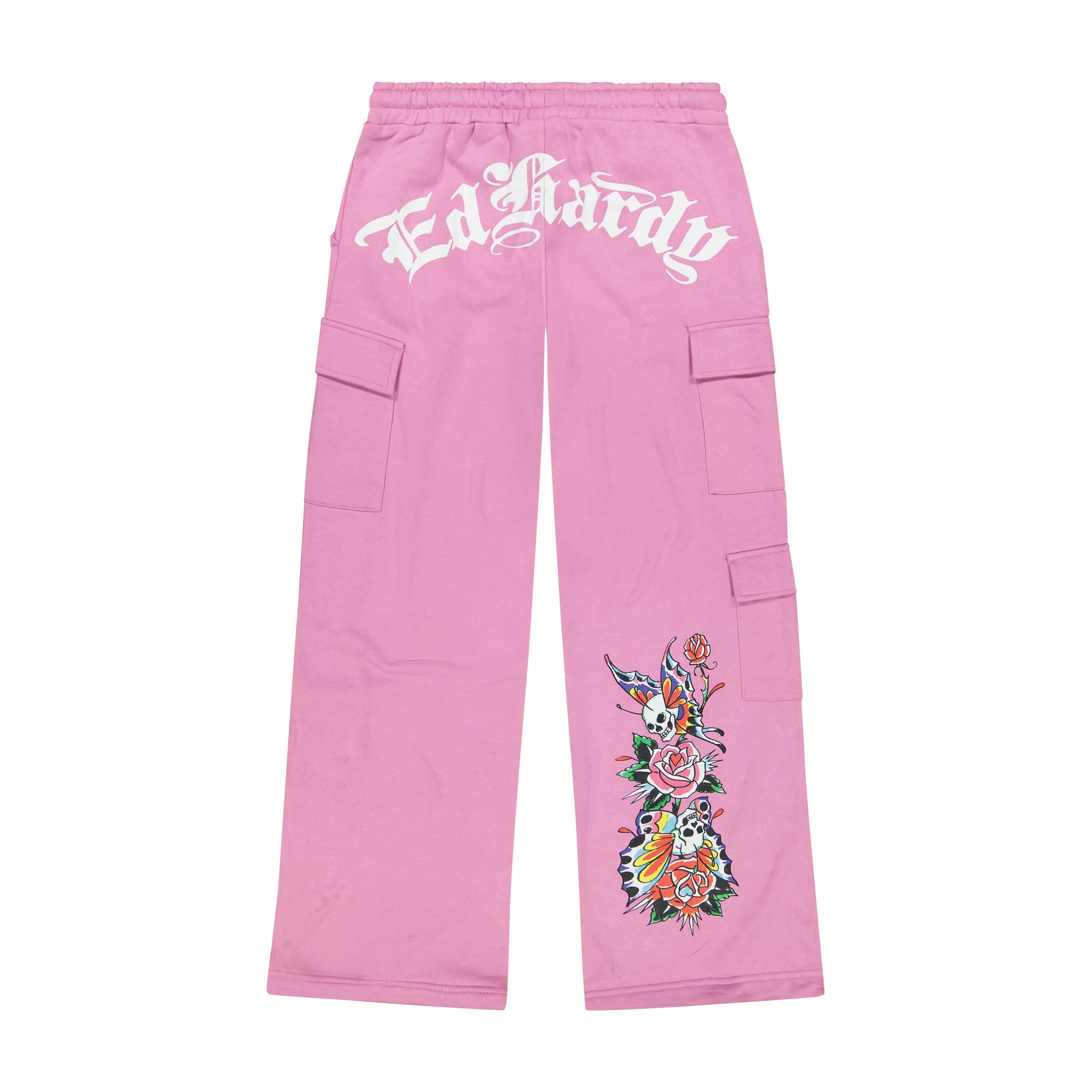Ed Hardy’s fleece sets add a modern twist to the styles that reigned in the early 2000’s . These wide leg cargo sweatpants are complete with a signature Flower Skull graphic.