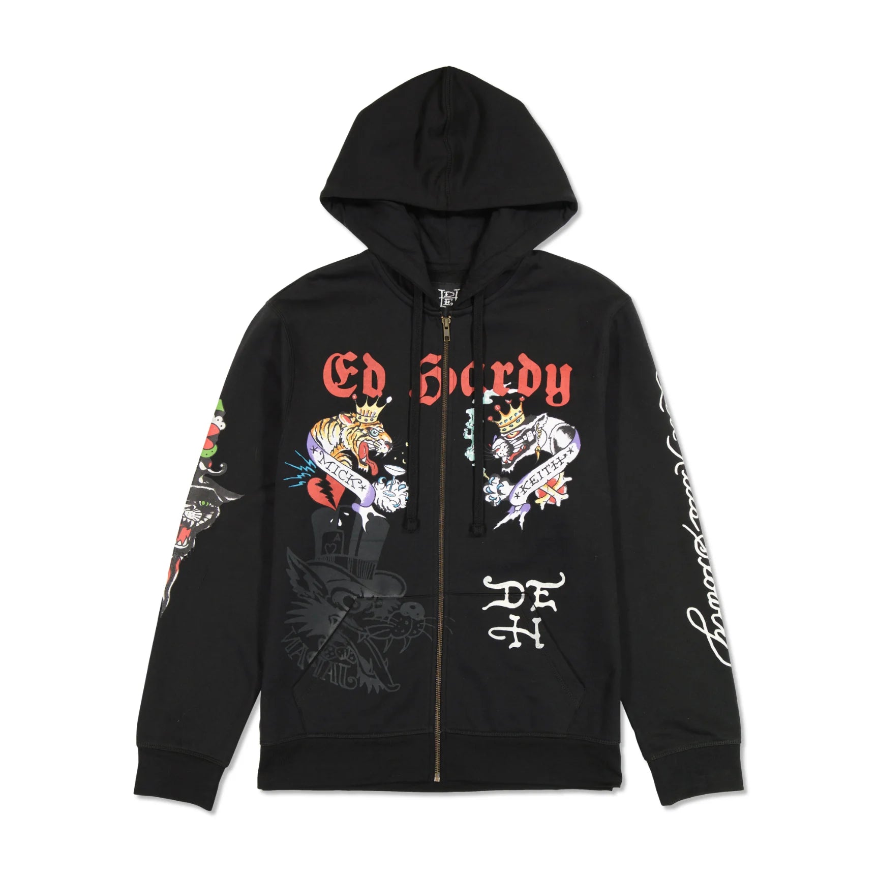 Express your untamed spirit with the Tiger Panther Hoodie from Ed Hardy. This hoodie showcases a captivating design of a tiger and panther, symbolizing strength and intensity, while keeping you warm and stylish.